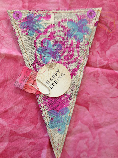 Our art group made prayer flags last month like the ones in Cloth Paper Scissors magazine.